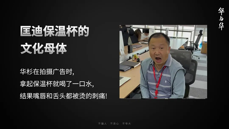 對于保溫杯來說,第二天還能保溫到多少度,它其實沒那么重要,重要的是要創造能被人記住的戲劇點——嘴巴都燙腫了!