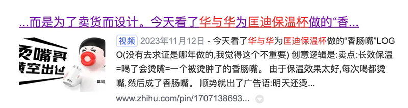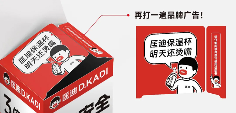 這句話一方面運用了人類集體的經驗和潛意識,另一方面,把原本負面的“燙嘴”,變成了正向的宣傳,來證明匡迪保溫杯的品質,傳播我們的品牌名。