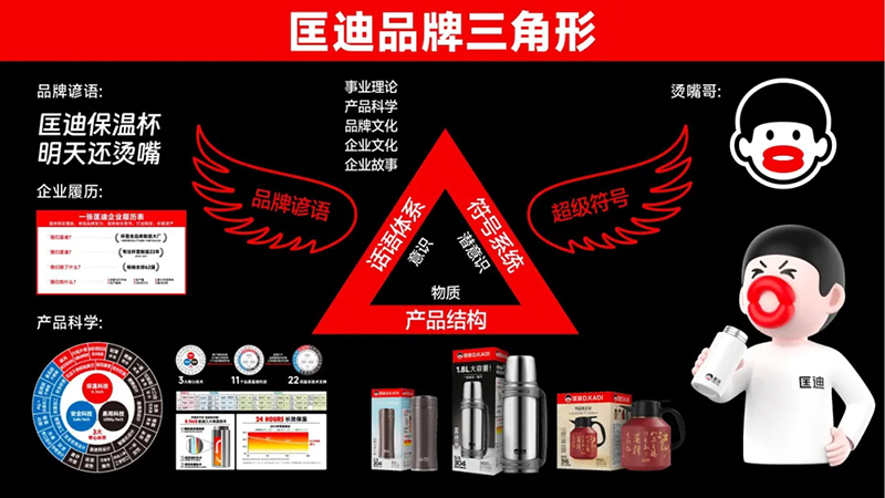 今天,“匡迪”這個名字、匡迪的杯子、匡迪燙嘴哥和“匡迪保溫杯,明天還燙嘴”無法再被分開,因為華與華出手,它們就成為了一個整體,這個包括了產品、話語和符號的品牌就成型了。